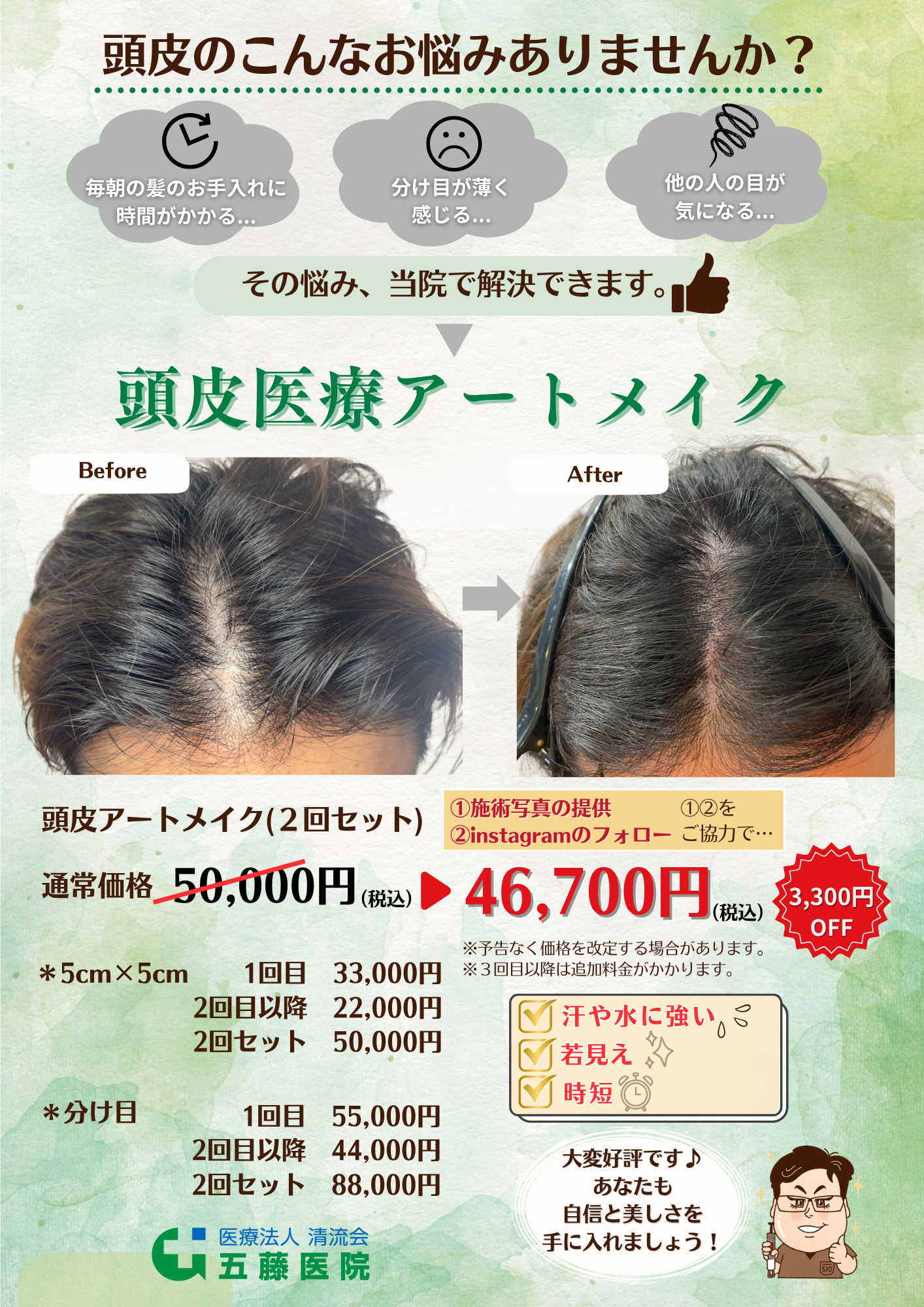 眉毛アートメイクの技術を頭皮に応用し、薄毛・生え際。分け目のお悩みに、自然な立体感を再現する施術です♪ 自然な見た目でボリュームアップ効果を得られ、ダウンタイムはほとんどありません。男女ともに対応可能ですので、お気軽にご相談ください。